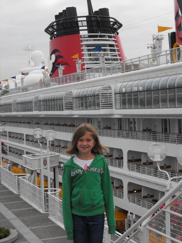 We were lucky and got boarding number 7 - we were called at about 11:30 and onto the ship we went! Each family is introduced separately with their last name and everyone claps for you and cheers - again, that "Rock Star" feeling. Here's my mom entering to - "We would now like to welcome Mrs. Kathie West!"